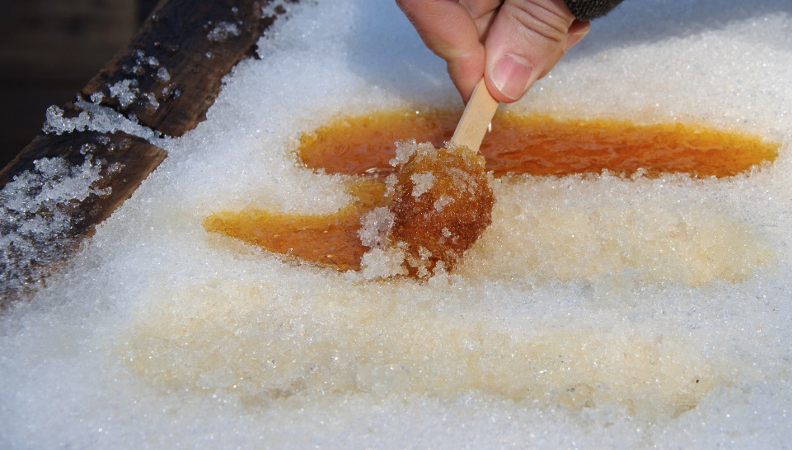 Why not using some snow for a cooking session? Well, snow taffies are just that! Some good (and clean) snow, some maple or honey syrup, a stick to roll it into a delicious icy lollipop in 5 minutes or less… what more can you ask? Maybe a recipe…, so here are two delicious ones you might want to try, with a few tips to get the better out of your sweet treat: